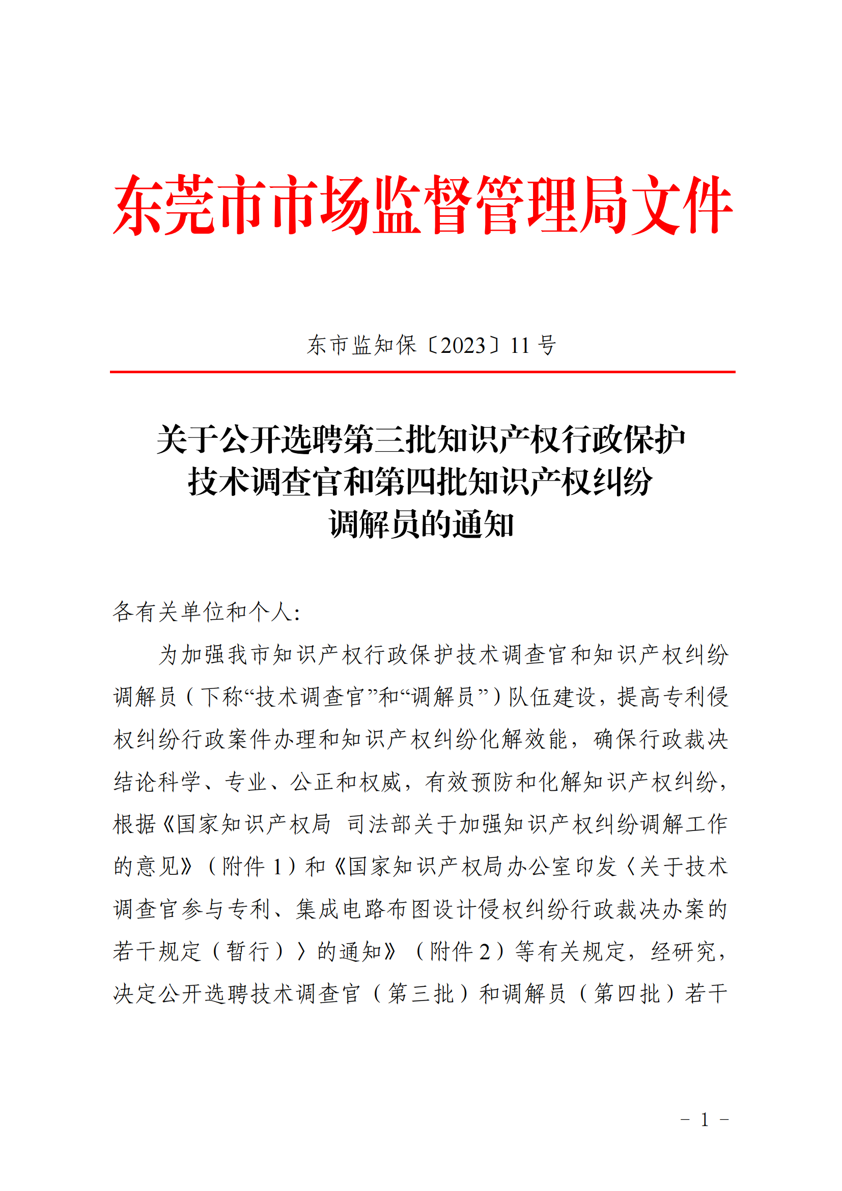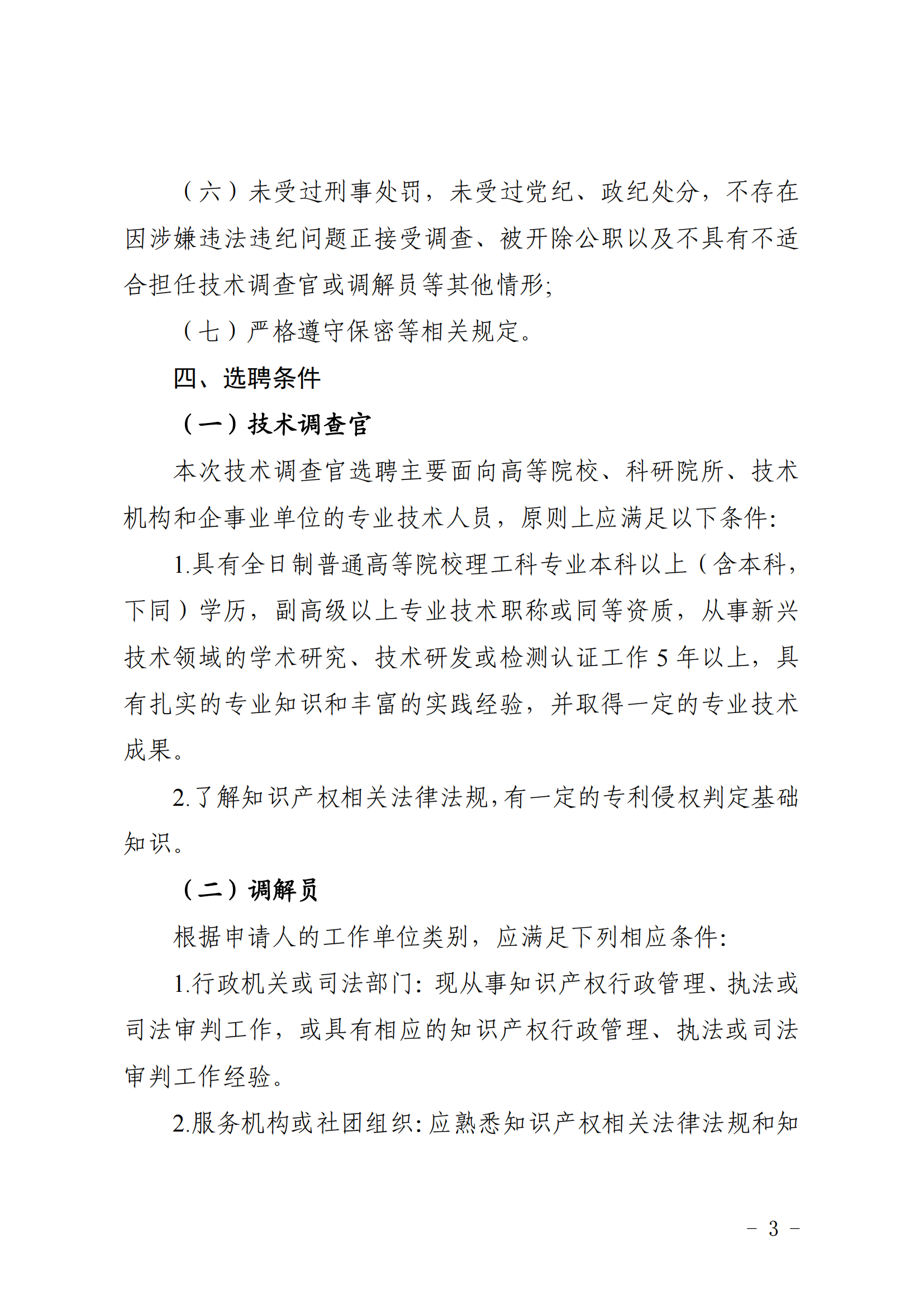 关于公开选聘第三批知识产权行政保护技术调查官和第四批知识产权纠纷调解员的通知