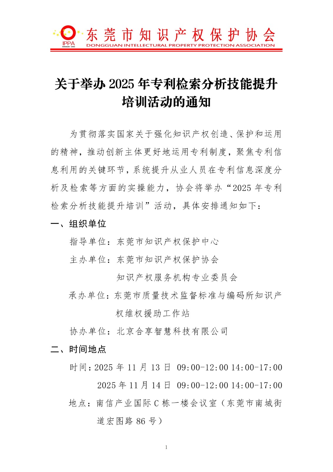 附件1:关于举办2025年专利检索分析技能提升培训活动的通知.pdf