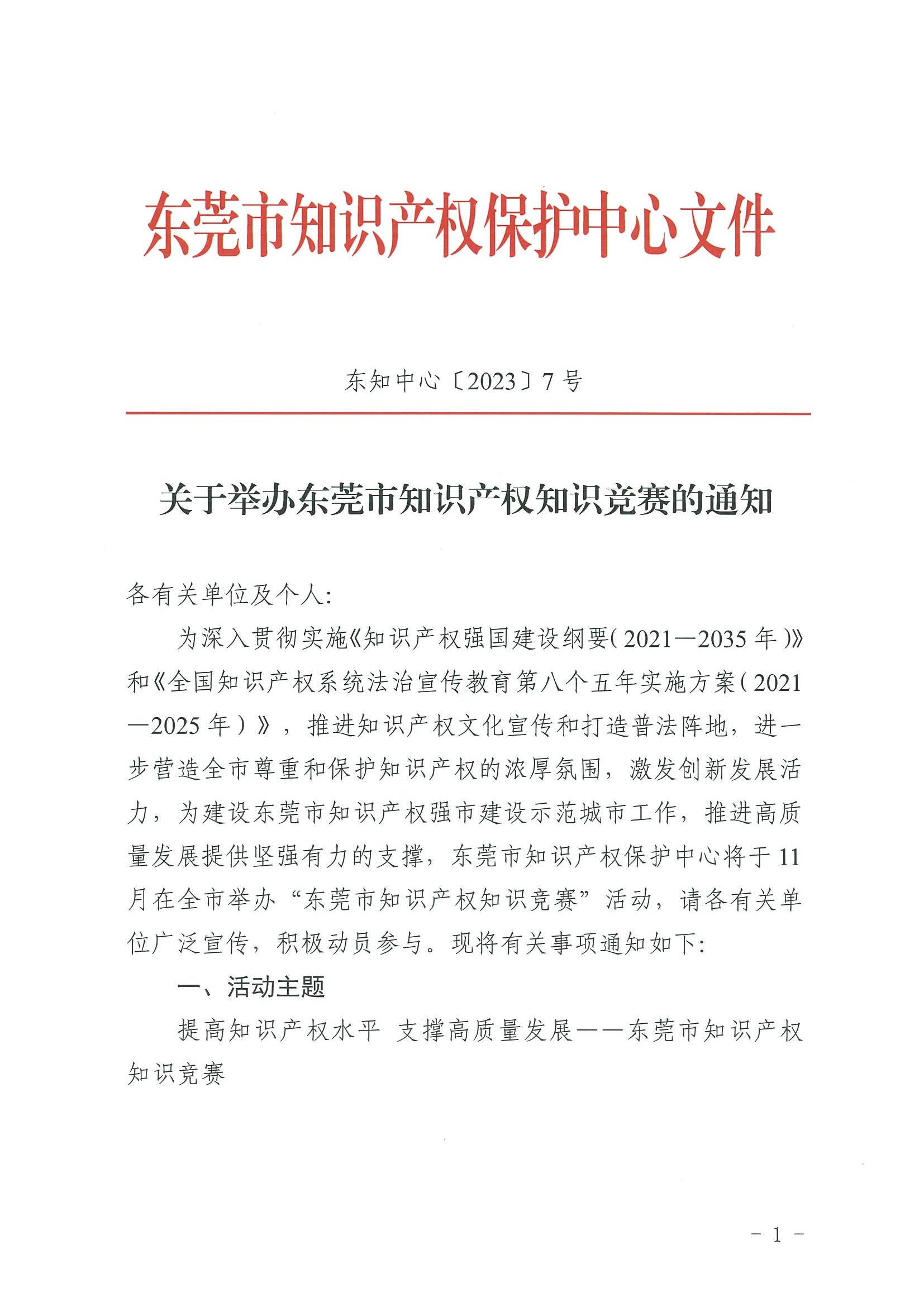 关于举办东莞市知识产权竞赛的通知